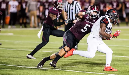 Second-team All-MVFC selection…Honorable mention Academic All-MVFC selection…Played in 11 games and started 10 at middle linebacker…Led the team in tackles with 120…Ranked third in the MVFC in tackles per game with 10.9…Named MVFC Special Teams Player of the Week after blocking two kicks and recording 10 tackles in the second half alone vs. Youngstown State…Recorded double-digit tackles in seven games…Had 19 tackles at SEMO, the most tackles for any SIU player since Bart Scott in 2002…Had three tackles for loss at Western Illinois…Forced fumbles at Western Illinois and Indiana State…Returned a fumble 25 yards for a touchdown vs. Missouri State…Also recovered a fumble vs. North Dakota State…Had eight quarterback hurries, four at Indiana State…Blocked three kicks, which led the MVFC and ranked eighth nationally.